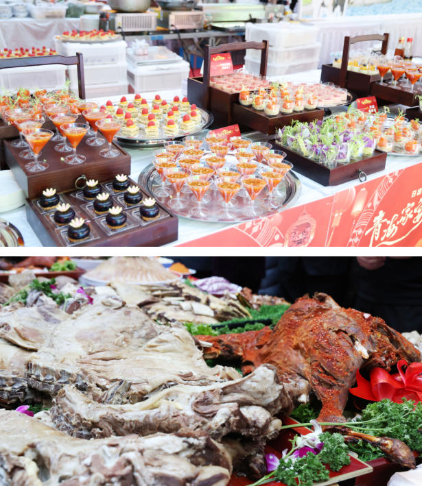 “食与链”供应链对接活动精准聚焦牦牛、藏羊、黄菇、青稞等刚察特色农畜产品,刚察青湖农牧投资开发有限公司等海北州四县供应链企业轮番登台推介;万达、索菲特等餐饮龙头企业直面供应链痛点建言献策;青海乔穆杰玛实业有限公司系统介绍产品认证、屠宰分割、市场输出等关键环节,现场供需双方开展精准对接,着力构建长期稳定产销协作机制。活动期间,青海家宴名企名厨为刚察本地餐饮企业传授牛肉面、熬饭、砂锅、香煎牛羊排等经典菜品技法,本地餐饮企业同步展示了藏餐礼宴的传统技艺,实现了技艺传承与人才培养的双向交流和共同提高。作为多元化消费场景的创新实践,青海家宴有机衔接刚察县“冰雪主题”系列文旅活动,结合省内外旅游代表体验圣泉湾冰雕雪景、参与跨年篝火、观赏高原日出及文旅推介表彰等活动,有效激活“美食+冰雪+文旅”多业态融合消费场景。