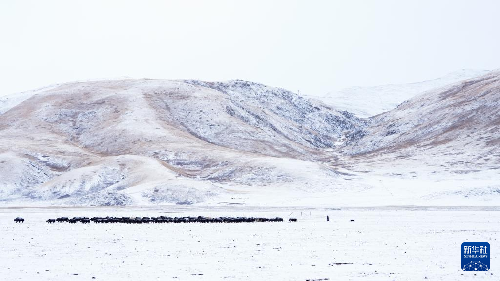 1月29日,牧民在青海省玉树藏族自治州杂多县境内的草原上放牧。新华社记者 齐芷玥 摄